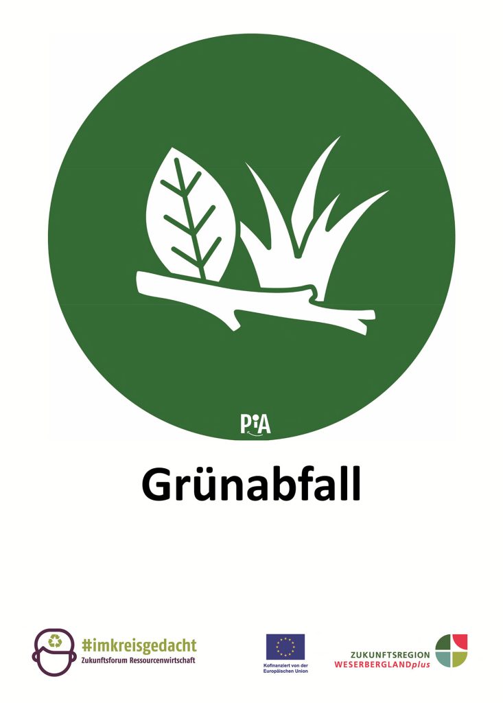 Baum- und Strauchschnitt, Rasenschnitt, Rasensoden, Stammholz < 10 cm Durchmesser, Staudenreste, Stroh, Unkräuter